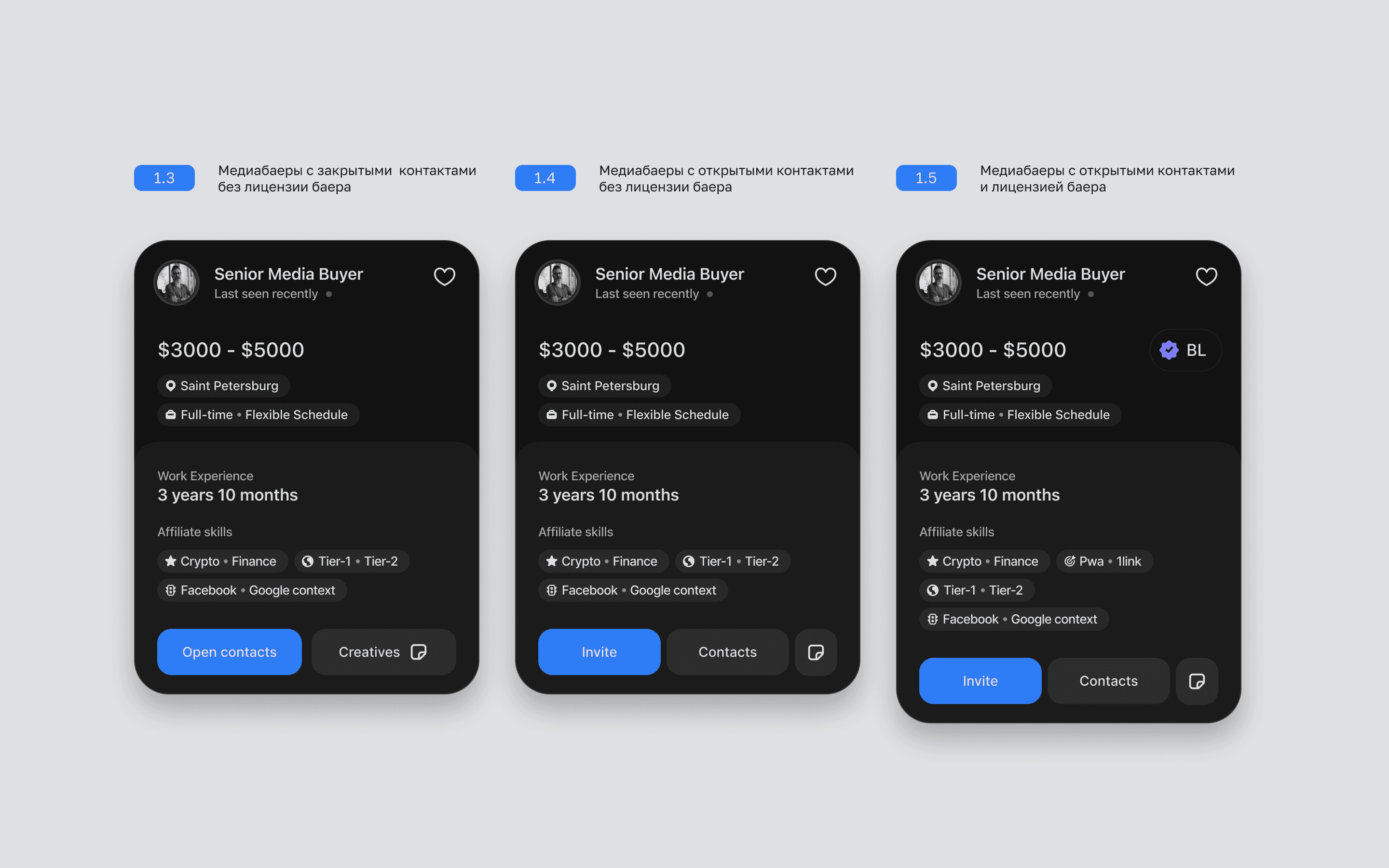 Media buying team names are often under NDA. Therefore, when looking at work experience, it's unclear how long a candidate worked in one vertical if several are listed, as relevant experience is almost reset when switching verticals.